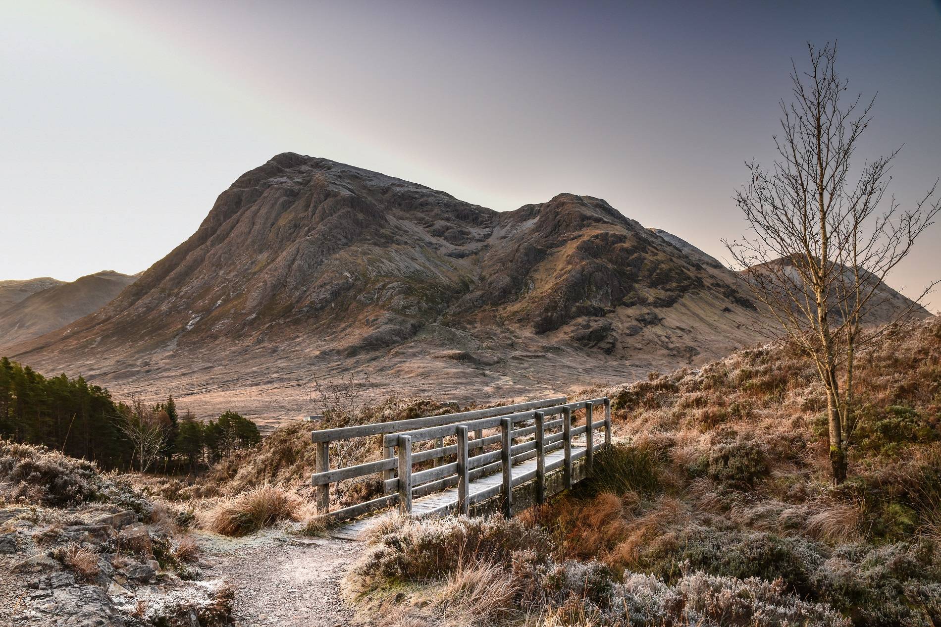 Daarna volgt een van onze favoriete delen van de West Highland Way! Vanaf Inveroran loopt u langs Loch Tulla en volgt u de militaire weg over de Rannoch Moor, een prachtig, eenzaam en open gebied dat ooit bedekt was door een gigantische ijskap en tegenwoordig een uitgestrekt veengebied is. Er is geen beschutting; bij slecht weer kan het hier guur zijn, terwijl het bij mooi weer gewoonweg adembenemend is. Het oorspronkelijke hotel uit de 17e eeuw bij Kingshouse is vervangen door een gerenoveerd hotel dat een ongeëvenaard uitzicht biedt op Buachaille Etive Mor, wellicht de meest gefotografeerde berg van Schotland.