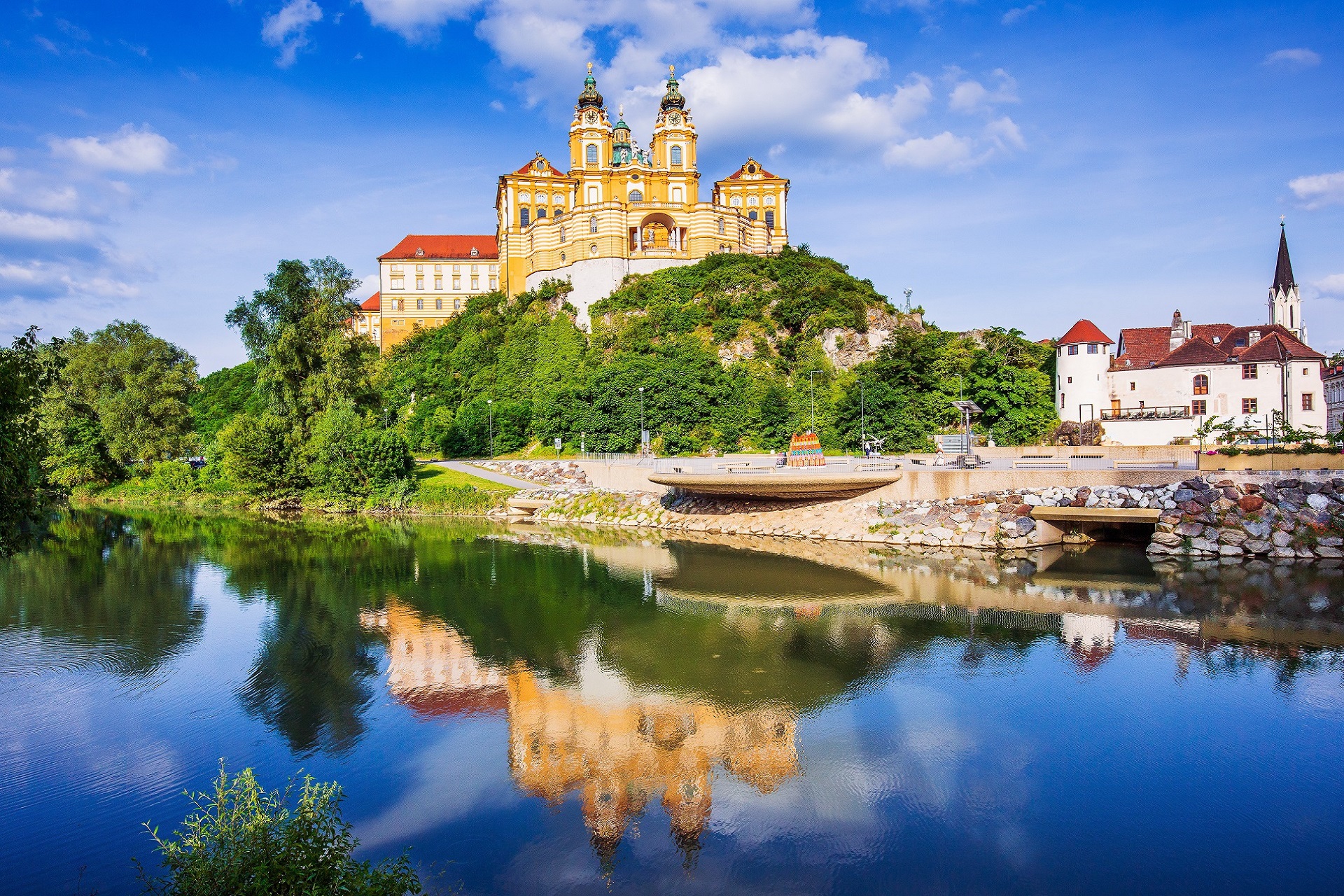 Het eerste deel van de etappe leidt u naar het dorp Rantenberg. Hier heeft u de mogelijkheid om de uitkijktoren Dachberg te bezoeken en te genieten van het fantastische uitzicht. Vanaf hier daalt u af naar de oevers van de Donau. Op het eiland Luberegg bereikt u al snel de waterkrachtcentrale Melk. U steekt de Donau over en komt in het oude gedeelde van de stad Melk met het schitterende barokcomplex van de Benedictijner abdij en haar enorme bibliotheek. Overnachting in Melk.